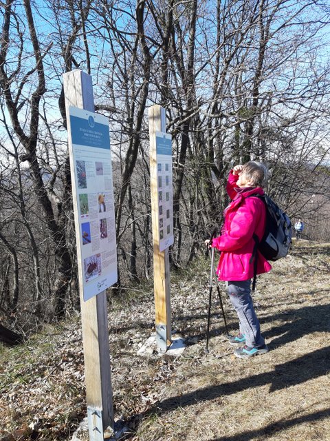 dolga pot na razgleden vrh s klopco, daljnogledom in vetrno harfo, ki je v
