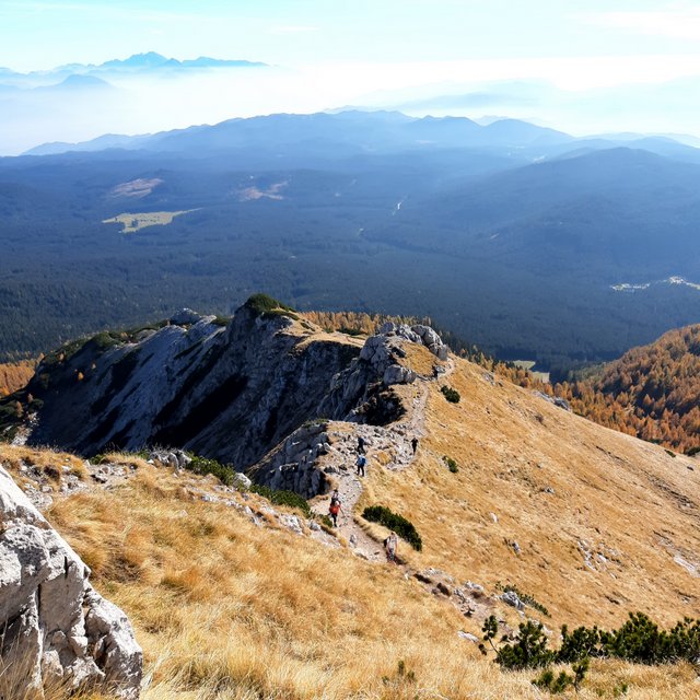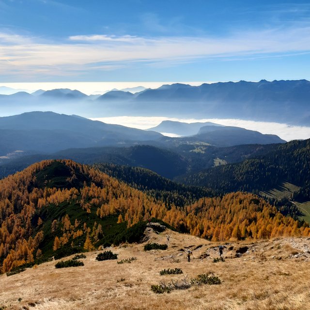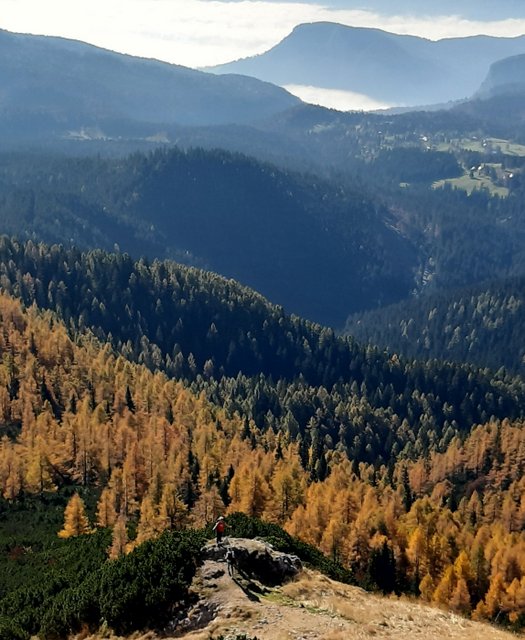 Prelepa je jesen v naših gorah, med zlatimi macesni, lep pogled na našega očaka,