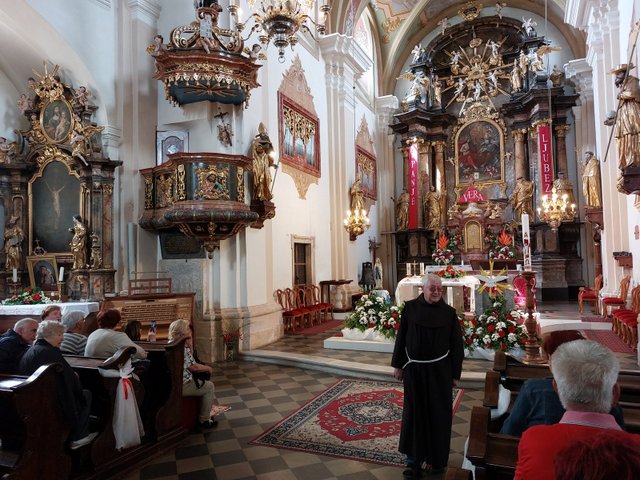 opremljena in okrašena cerkev s frančiškanskim samostanom. Vas leži 50 metrov
