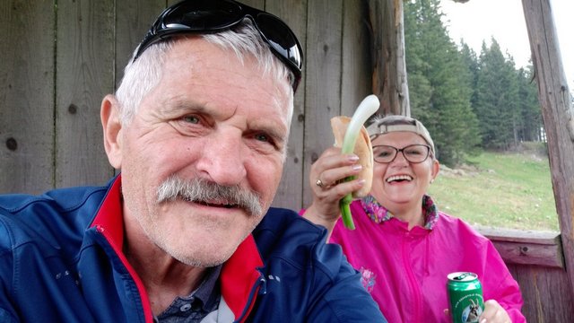 umaknema pred dežjem in uživava ob dobri malici in pivu.Ker pa po dežju
