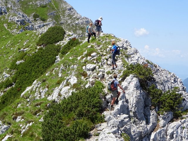 daljši postanek. Z vrha se spustimo po kar zahtevnem grebenu do Škrbine (1869 m), ki