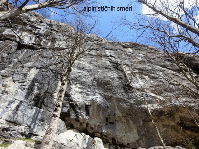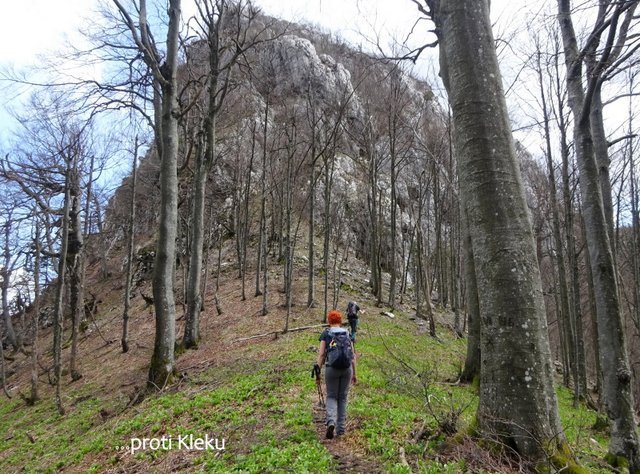 Klečice (1058 m - 30. min.). Sledi nadaljevanje poti pod mogočno skalno steno in