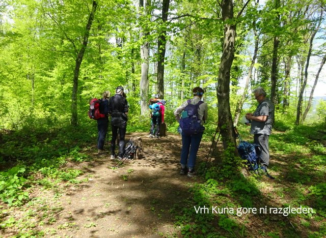 Kuna gora (380 m - ki je bil zaprt), nato pa, po postanku pri koči, nadaljujemo