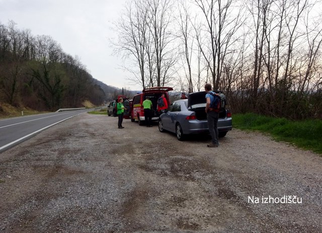 provizorično parkirišče v bližini vasi Dragonja (ok. 20 m), od koder smo se po