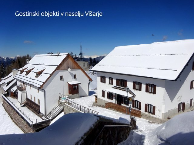 dviga nad romarsko cerkvijo sv. Matere Božje (1766 m). V zaselku Višarje je