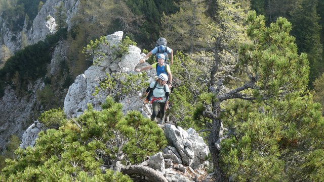Nadaljujemo po grebenu in preplezamo vrhove Na možeh. Z drugega vrha je potreben