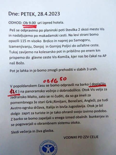 VIS 27. 4. - 1. 5. Planinsko - turistični sprehod po Visu. Lep pozdrav Mirko.