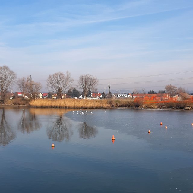 Vseskozi smo lahko občudovali Ptujski grad in odsev mesta v vodi. V prijetnem