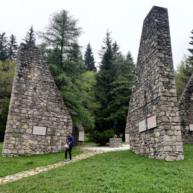 Najprej smo se ustavili na Podljubelju pri spomeniku internirancev. Taborišče je bilo