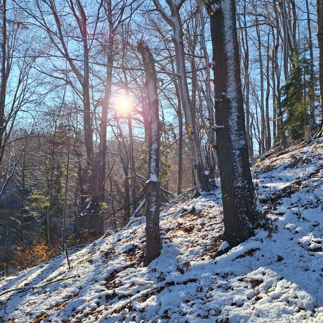 listja, posutega s snegom, primerno letnemu času, strmina proti vrhu je narekovala