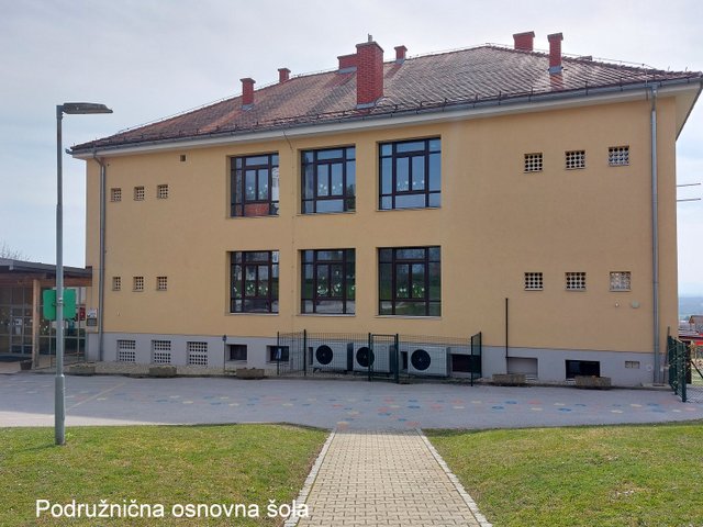 nekdanje osnovne šole, poleg nje pa je cerkev Janeza Krstnika. Asfaltna cesta