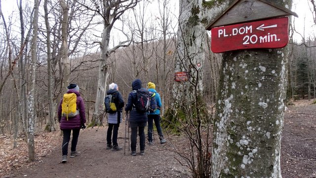 napotila na parkirišče v Žgano vino, smo se zaradi močnega vetra podali na vrh po globeli