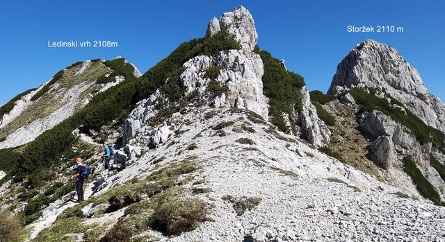 Ledinski vrh 2108m.Vinko še vmes skoči na Storžek 2110m in uživam ob