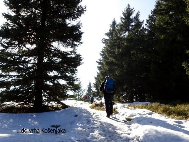 Košenjaka smo potrebovali dobre 4 ure hoje. Po postanku na vrhu sestopimo po avstrijskem
