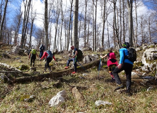 razglednik na Učko, Planik in druge vrhove Čičarije. Sledil je vzpon na Bodišinac (948 m),
