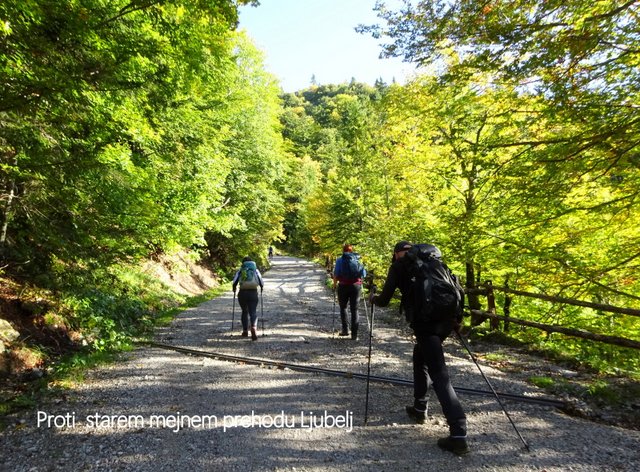 cesti, ki pelje do koče na starem mejnem prehodu Ljubelj (1369 m); tam zavijemo na