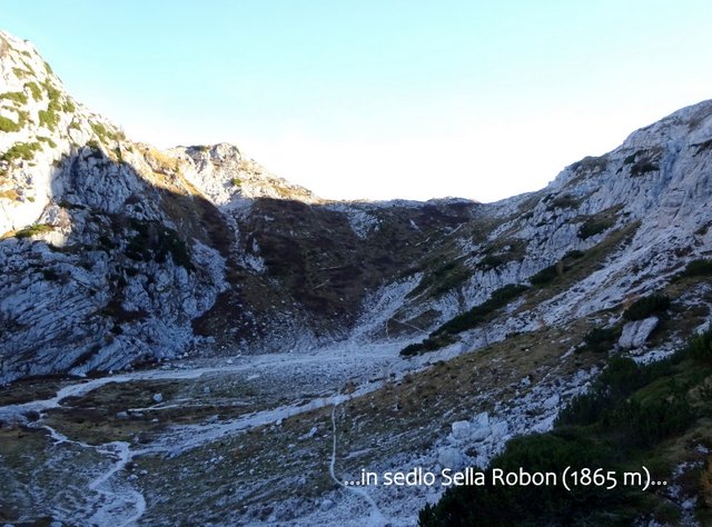 Julijcev, se vrnemo na sedlo Sella Robon, od koder po poti 637, pod previsno steno