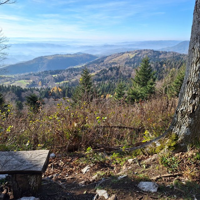 daleč domov in še na Plešivec v bližini koče, štirje lepi vrhovi so to. Če imaš psa,