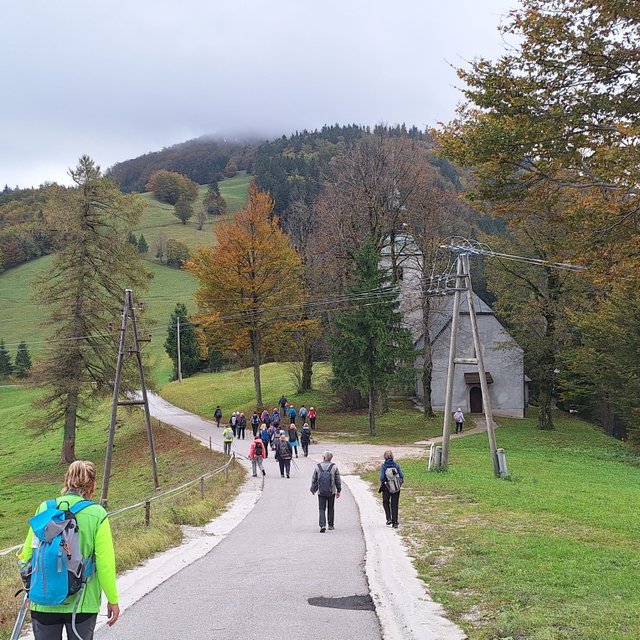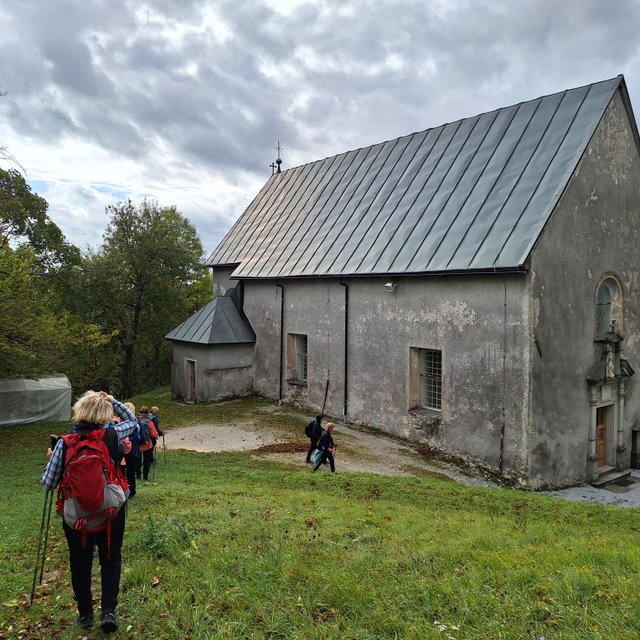 mimo cerkvice, malo po gozdnih poteh, malo pa tudi po cesti. Na desni smo občudovali