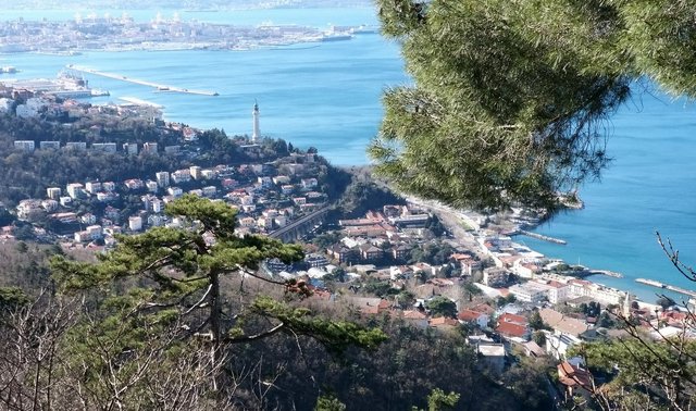 mestno jedro se sprehodiva do "OBELISCA",pokukava dol proti Trstu in hitro