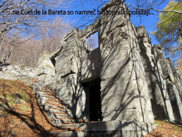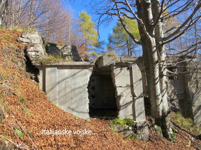 italijanska vojska imela na vrhu topniške položaje, zato so tam še danes vidni