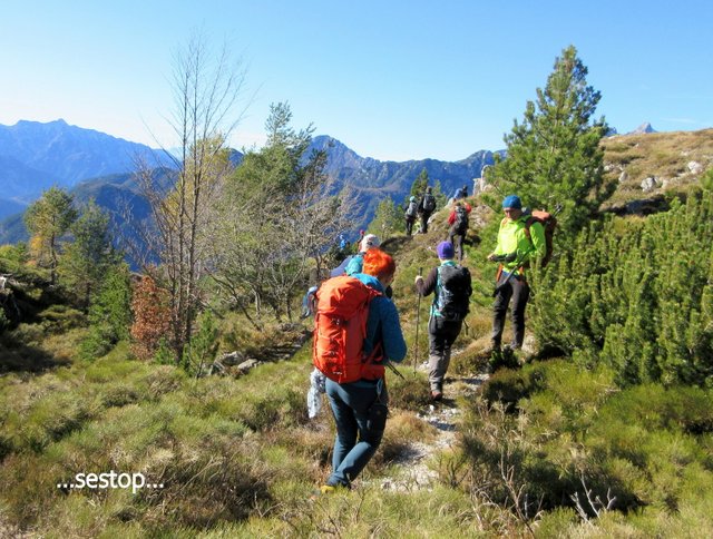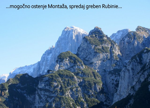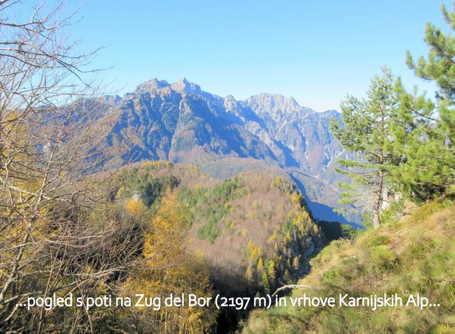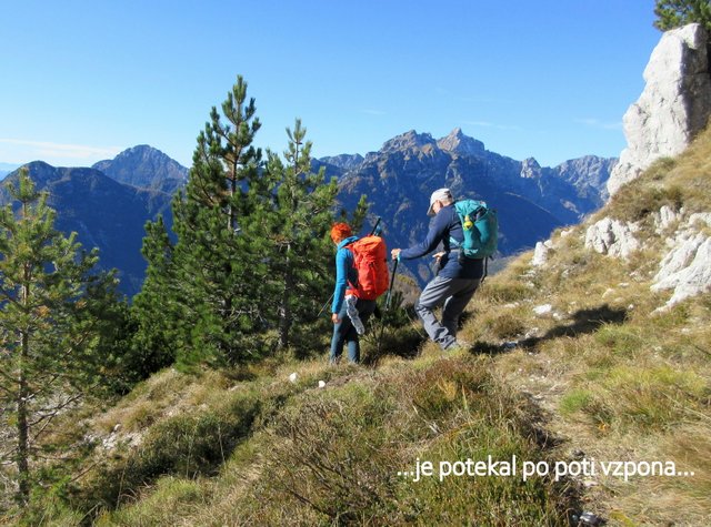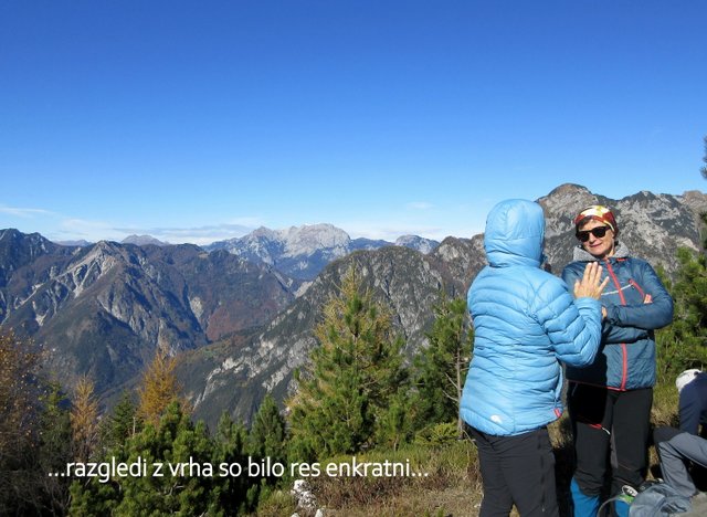 Julijskih in Karnijskih Alp. Po postanku na vrhu sestopimo po poti vzpona in si