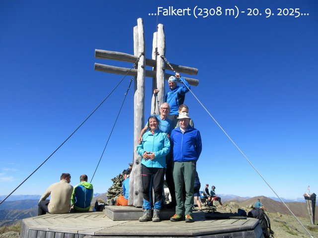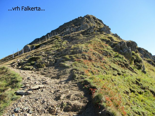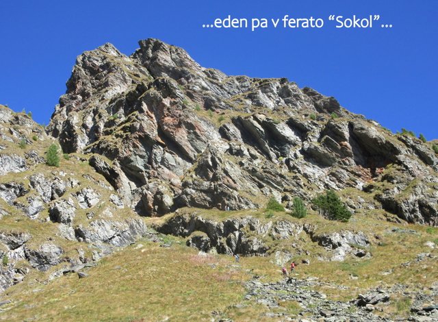 "skupine" in se po markirani poti, oz. po obeh feratah, povzpeli na vrh Falkerta. Z