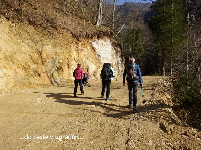 sledljivih poteh nadaljevali po grebenu (gor - dol) na Hude stene (1208 m) in