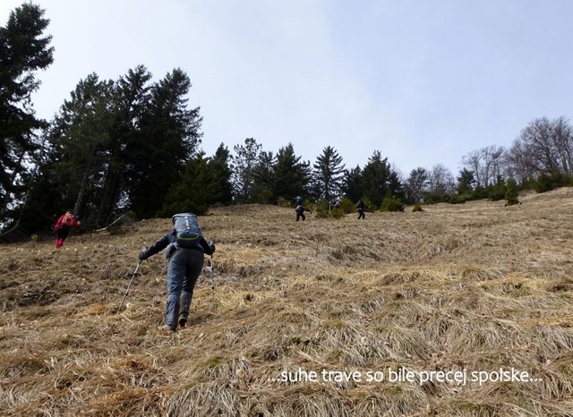 in grebenih, povzpeli najprej na Škrbino (1142 m), nato pa po nekoliko bolj slabo