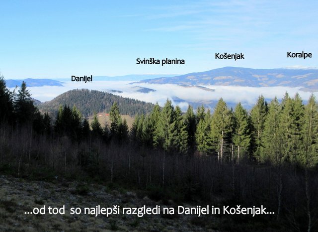 planino/Saualpe, Golico/Koralpe, itd. S Kremžarjevega vrha sestopimo do Koče