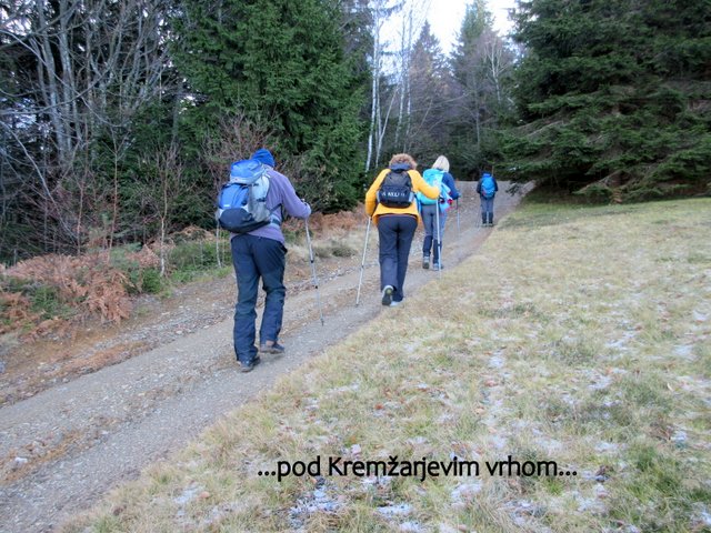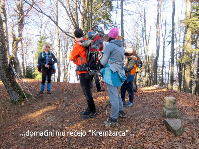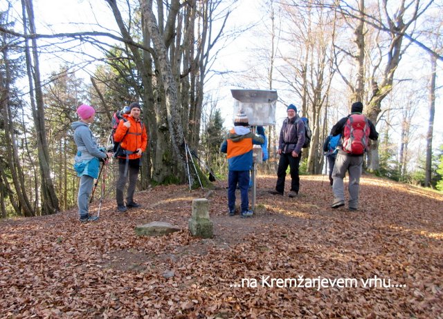pod Kremžarjevim vrhom (1102 m), kjer smo imeli daljši postanek. Po počitku