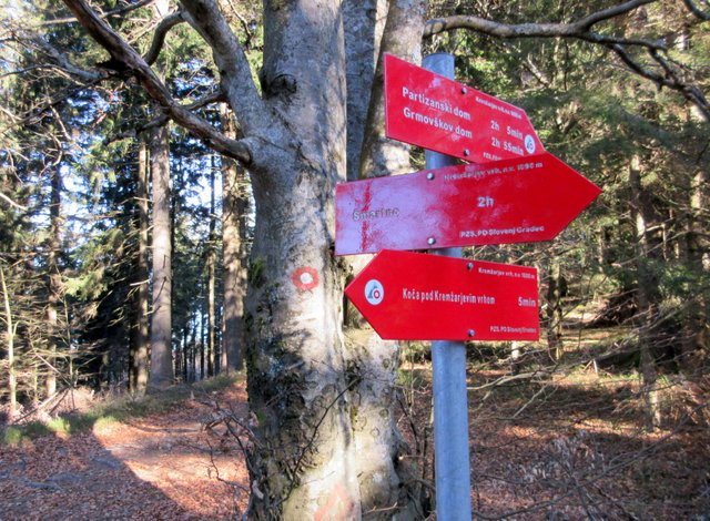 Podlesnik in Ravnjak, dosežemo že znano markirano pot, ki nas je pripeljala na