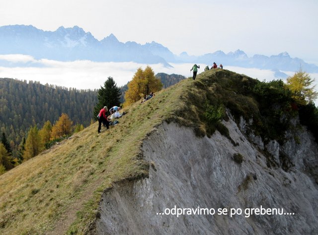 počitku na vrhu nadaljujemo po razgibanem  grebenu, kjer poteka državna meja;