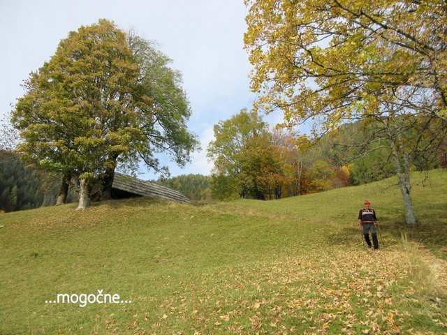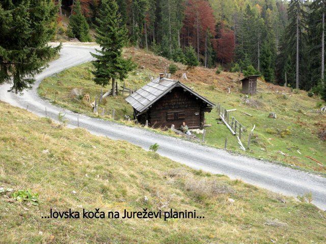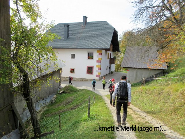 Jureževo  planino do kmetije Merkl (1030 m - Jureževa kmetija je opuščena), nato  pa