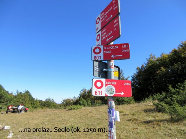 pri razglednem stolpu sestopimo, preko vrha Plas (1285 m), na prelaz Poklon (922 m),