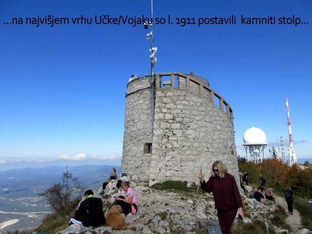 postavljen kamniti razgledni stolp. Na planinski izlet na Učko, oz. Vojaka, smo se