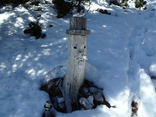 Iz prelaza Šajda smo se odpravili na Obir. Pri križu se začne sneg, ki zjutraj še drži in lepo napredujemo pod Kravjim vrhom na cilj.