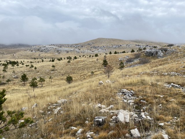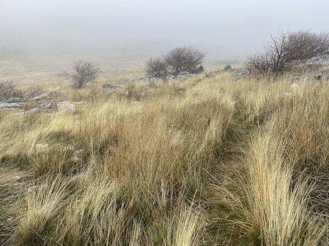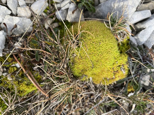 skalnih formacij. Čudno, kako to nastane. Med trdo travo raste mah, šaš,