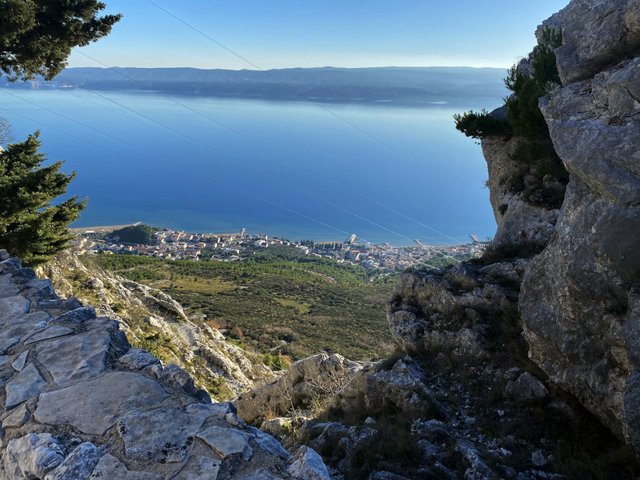 iz Omiša iz avtokampa. Stara tlakovana pot vodi do vasice zgoraj mimo vilinskega