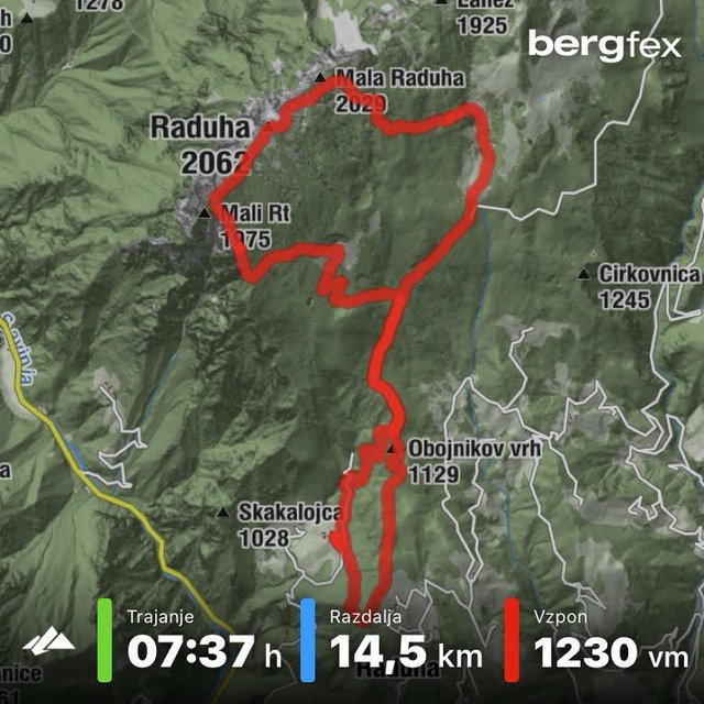 dobrih 7 ur, naredili smo okoli 1300 višinskih metrov.