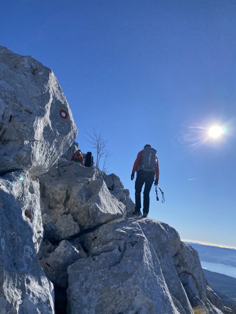 zložno po kamnitih tleh. Počasi smo prispeli na greben in tu smo se malo