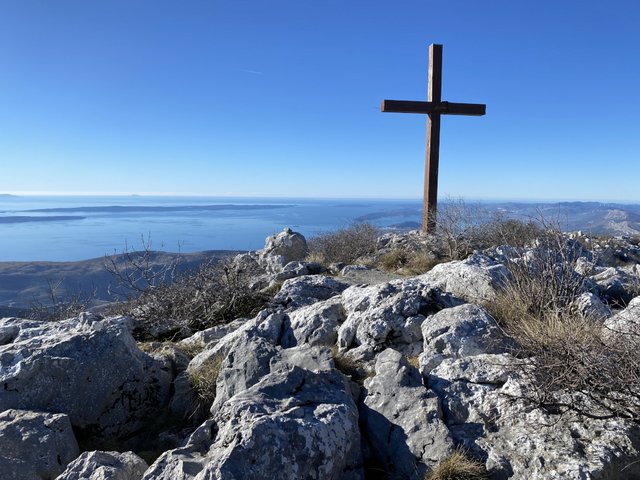 Nekaj kamnitih skokov in smo prispeli do križa na Velikem Kabalu. Zakaj to