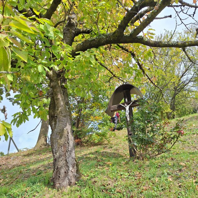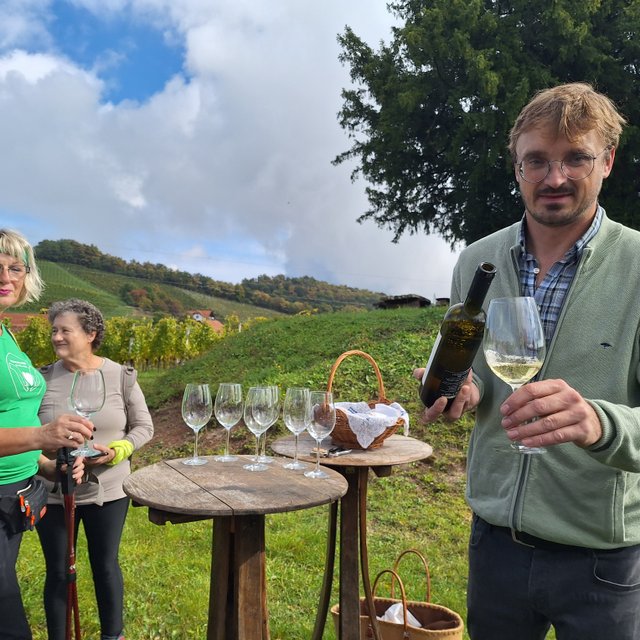 za njih. Na sredi poti pri stari trapistovski tisi nas je pogostil vinar, ki
