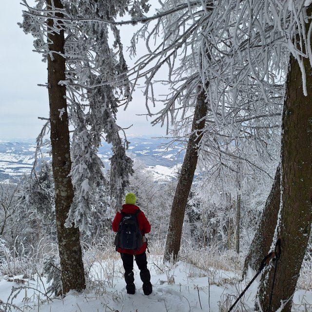 pričeli pod Oslico, premagali breg do vrha in po novozapadlem snegu kmalu prišli do