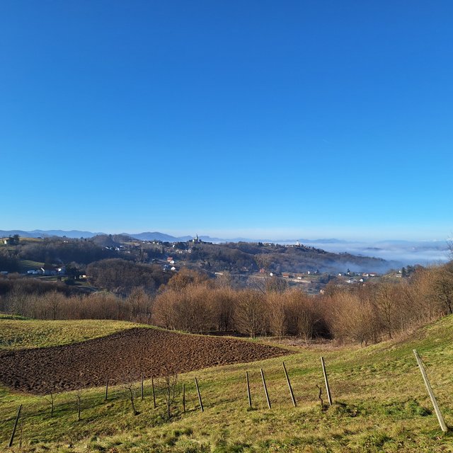 preko meje po poti zdravja proti razgledniku Videž. Meglice so se porazgubile in