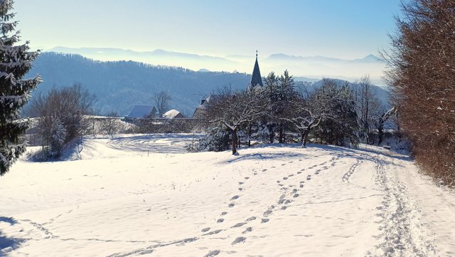 Prva prava zimska v letošnji zimi v sončnem vremenu iz Črešnjic.