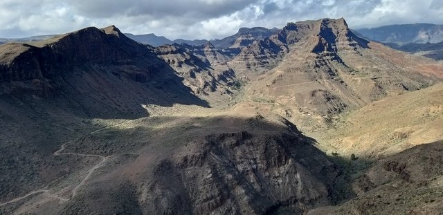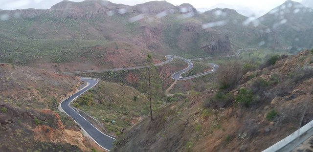 Las Palmasa in naprej v hribe po zelo vijugasti in zelo ozki cesti do višine