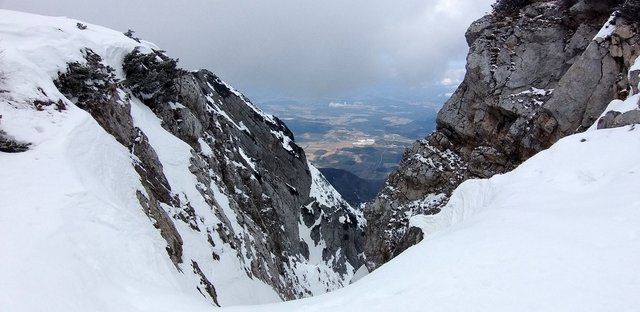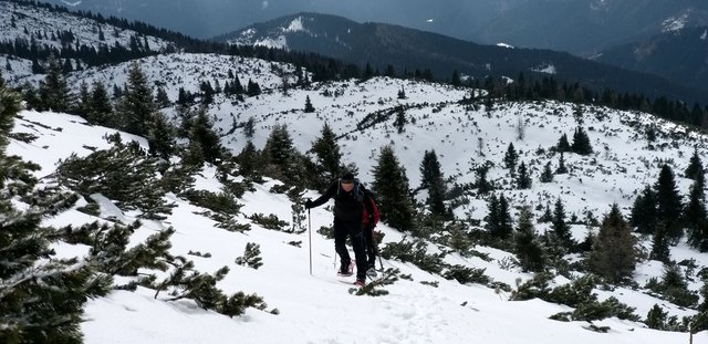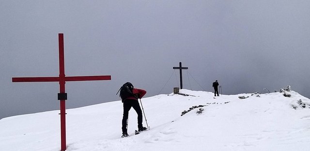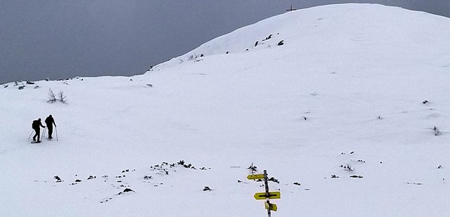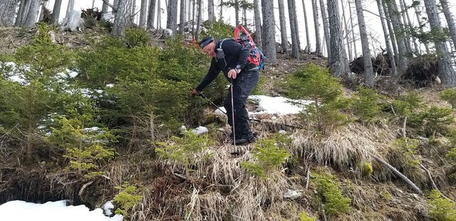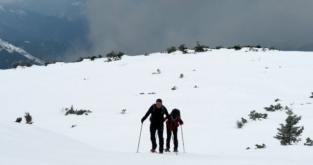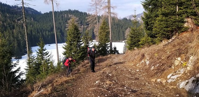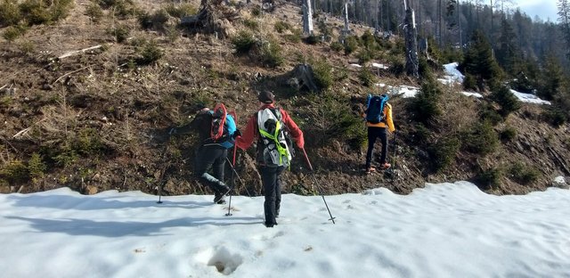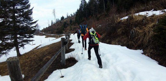 izhodišču. Krplje pri sestopu so še kako prišle prav,saj se je snežna