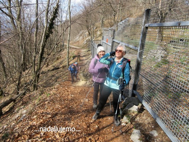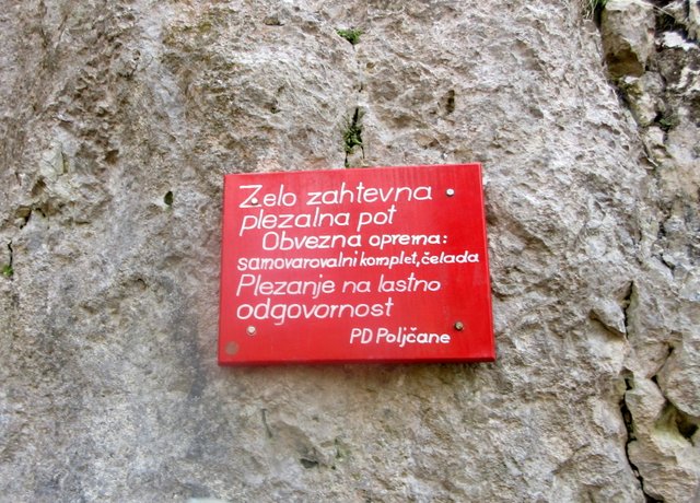preplezata; ostali pa nadaljujemo mimo jame Baljunače do zavarovanega vojaškega