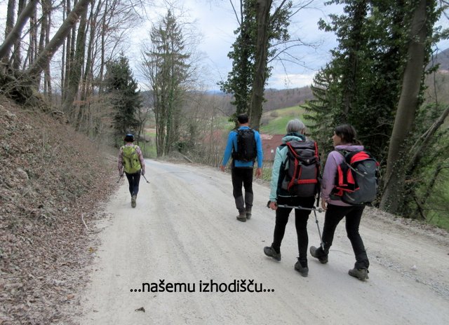 naše izhodišče. Hoje je bilo za ok. 5 h (ok. 11 km); vzpona pa je bilo za ok. 800